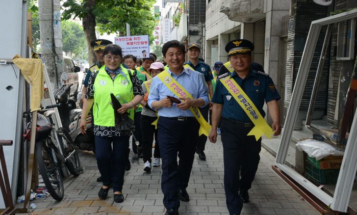 합동 순찰에는 '석관동 한마음 순찰대원' 100여명과 임홍기 종암경찰서장, 김영배 성북구청장 등이 참여했다.