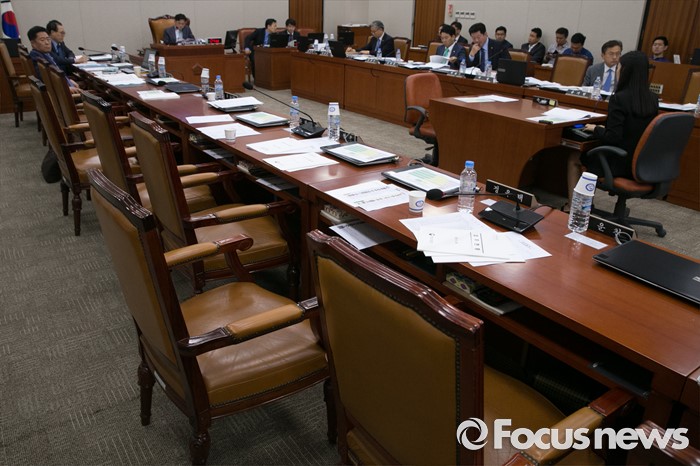 (서울=포커스뉴스) 24일 오후 서울 여의도 국회에서 열린 산업통상자원위원회 전체회의에 대부분 의원들이 불참해 빈 자리가 보이고 있다.