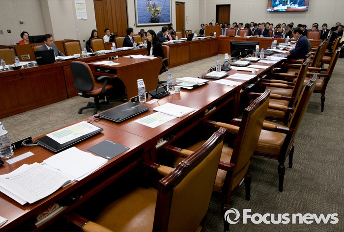 (서울=포커스뉴스) 24일 오후 서울 여의도 국회에서 열린 산업통상자원위원회 전체회의에 대부분 의원들이 불참해 빈 자리가 보이고 있다.