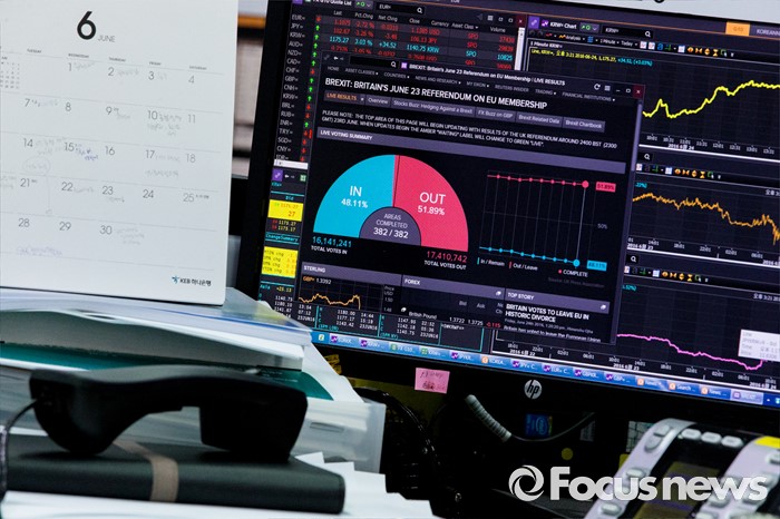(서울=포커스뉴스) 코스피와 코스닥이 브렉시트 확정에 나란히 폭락한 24일 오후 서울 중구 KEB 하나은행 딜링룸에서 딜러들이 분주하게 업무를 보고 있다. 이날 코스피는 전거래일보다 61.47포인트(3.09%) 내린 1925.24에 장을 마감하며 4년여 만에 최대 낙폭 수준을 기록했다.