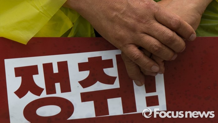 (서울=포커스뉴스) 24일 오후 서울 영등포구 산업은행 앞에서 열린 '성과급제 폐지와 노동기본권 쟁취를 위한 공무원·교사 결의대회'에 참가한 조합원이 손피켓을 들고 있다.