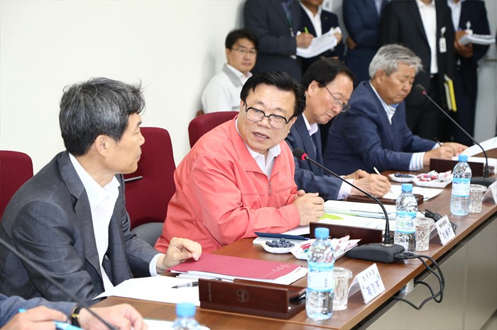 (고성=포커스뉴스) 이동필 농림축산식품부 장관이 24일 경남 고성군 농업기술센터에서 재정부 법제처장 등이 참석한 가운데 열린 규제개혁 현장포럼에 참석해 규제개혁 간담회를 진행하고 있다. <사진제공=농림축산식품부>