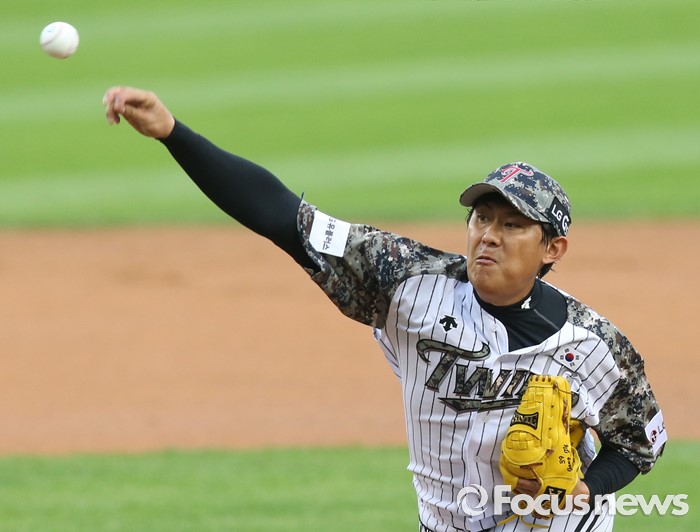 (서울=포커스뉴스) 24일 서울 잠실구장에서 열린 2016 프로야구 넥센-LG 경기에서 1회초 LG 선발투수 장진용이 투구하고 있다.