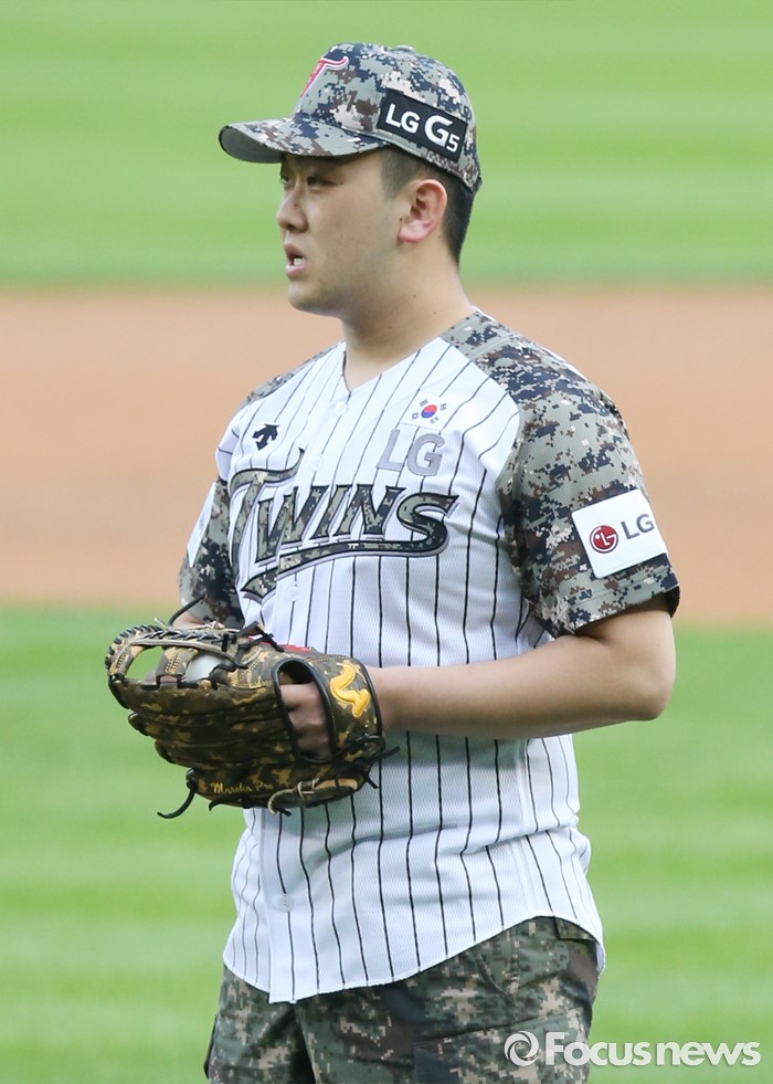(서울=포커스뉴스) 24일 서울 잠실구장에서 열린 2016 프로야구 넥센-LG 경기에 앞서 6.25전쟁 발발 66주년을 맞아 '땡큐 솔저스' 행사를 갖고 북한의 지뢰 도발로 부상당한 하재헌 하사가 시구 준비하고 있다.