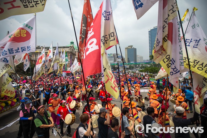 전국민주주의노동조합총연맹(민주노총)은 25일 오후 3시 서울 중구 시청 앞 광장에서 조합원 6000여명(경찰 추산)이 참여하는 전국 노동자대회를 연다.