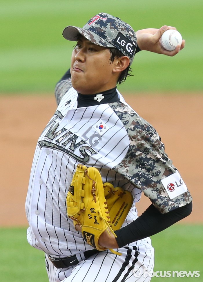 (서울=포커스뉴스) 24일 서울 잠실구장에서 열린 2016 프로야구 넥센-LG 경기에서 1회초 LG 선발투수 장진용이 투구하고 있다.