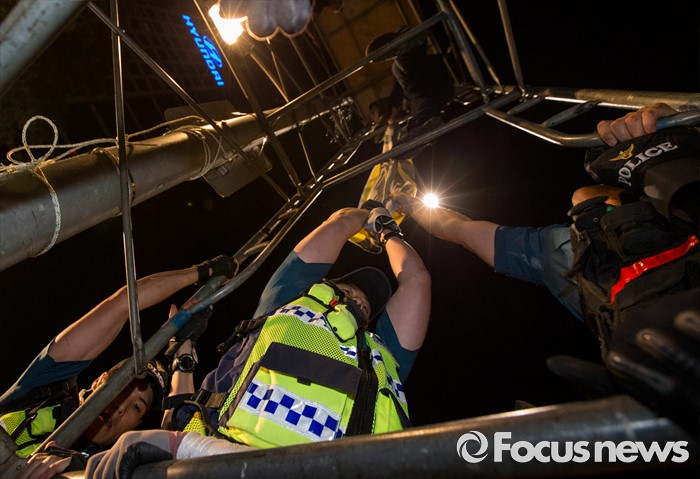 (서울=포커스뉴스) 24일 오후 서울 서초구 현대자동차 본사 앞에서 열린 '유성기업 故 한광호씨 100일ㆍ현대차 진격의 날' 집회에 참석한 노동자들과 경찰이 충돌을 빚고 있다.