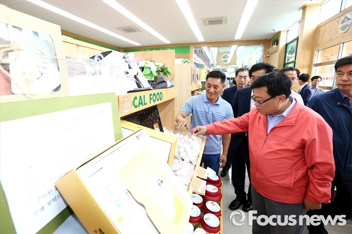 (경산=포커스뉴스) 이동필 농림축산식픔부 장관이 25일 경북 경산시 자인농협농산물산지유통센터현장을 찾아 운영현황을 점검하고 복송아 선별장, 로컬푸드 매장 등을 돌러보고 있다. <사진제공=농림축산식품부>