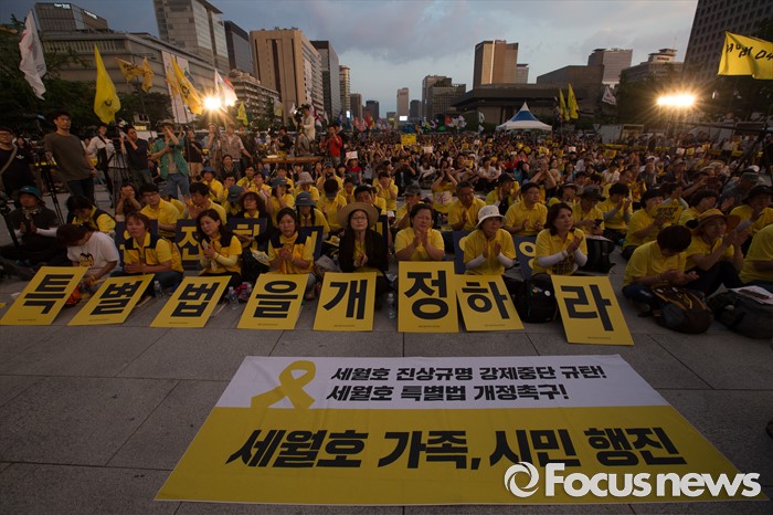 (서울=포커스뉴스) 25일 오후 서울 종로구 광화문광장에서 열린 '세월호 특별법 개정 촉구 범국민문화제'에 참석한 시민들이 세월호 특별법 개정과 온전한 인양을 촉구하고 있다.