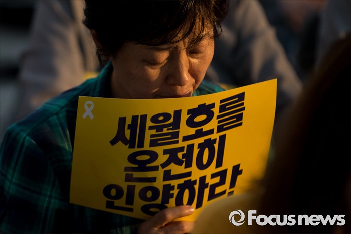 (서울=포커스뉴스) 25일 오후 서울 종로구 광화문광장에서 열린 '세월호 특별법 개정 촉구 범국민문화제'에 참석한 시민들이 세월호 특별법 개정과 온전한 인양을 촉구하며 손피켓을 들고 있다.