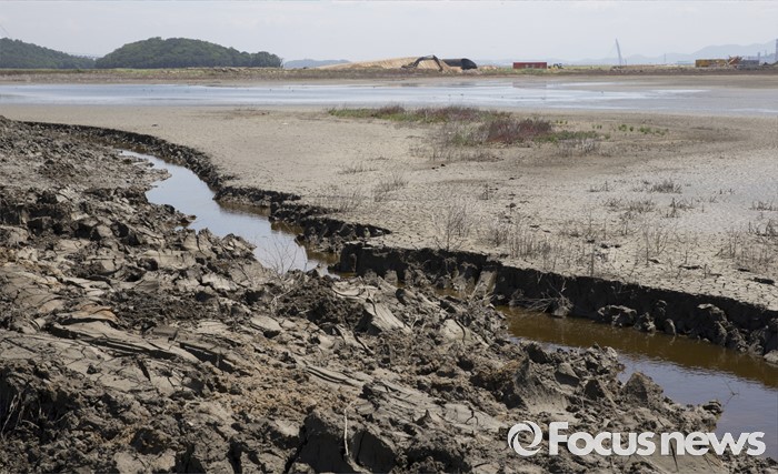 (인천=포커스뉴스)장다리물떼새의 둥지가 있던 영종도 매립지의 조그만 습지가 중장비로 파 헤쳐지고습지의 물빼기작업이 시작돼번식중인 장다리물떼새들의 생존에 위협이 되고 있다.사진 중앙 위쪽의 칠면초가 자란 주변은 사방이 물로 에워 싼 섬이었으나,중장비로 임시 수로를 만들고 양수기로 물을빼면서 건조한 사막처럼 변하고 있다.