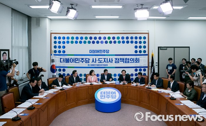 (서울=포커스뉴스) 26일 오전 서울 여의도 국회에서 열린 더불어민주당 시도지사 정책협의회에 참석한 우상호 원내대표가 모두발언을 하고 있다.