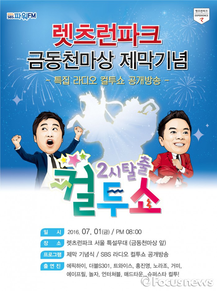 특히 2부는 SBS파워FM '두시탈출컬투쇼'의 특집라디오 공개 방송과 트와이스, 에픽하이, 거미, 홍진영, 언터처블, 에이프릴, Double S 301, 매드타운, 노라조, 놀자 등의 공연이 진행된다. 고객입장은 당일 오후 6시30분부터 가능하다.