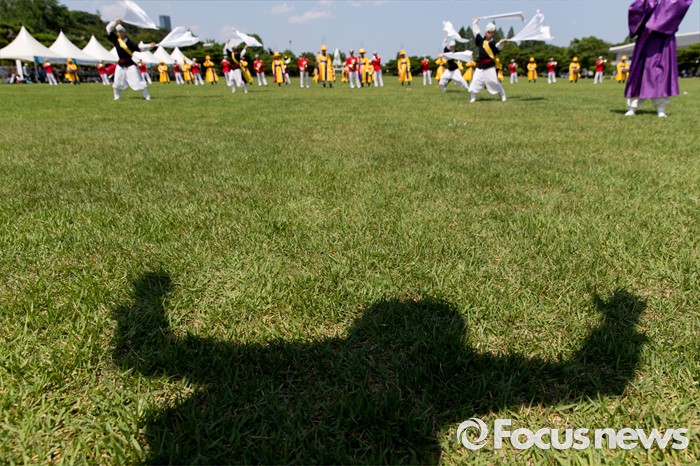 (서울=포커스뉴스) 26일 오후 서울 동작구 국립서울현충원 겨레얼마당에서 국방부 군악대와 의장대가 호국보훈의 달을 맞아 전통의장 및 퍼레이드 시범을 선보이고 있다.