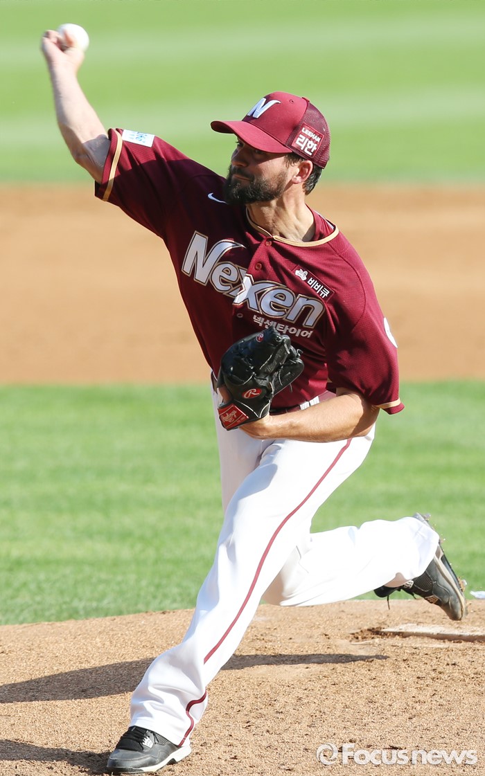 (서울=포커스뉴스) 26일 서울 잠실구장에서 열린 2016 프로야구 넥센-LG 경기에서 1회말 넥센 선발투수 맥그레거가 투구하고 있다.