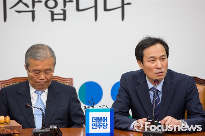 (서울=포커스뉴스) 우상호 더불어민주당 원내대표가 27일 오전 서울 여의도 국회에서 열린 비상대책위원회의에 참석해 모두발언 하고 있다.