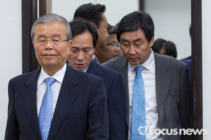 (서울=포커스뉴스) 김종인(왼쪽) 더불어민주당 비상대책위 대표와 우상호(왼쪽 두 번째) 원내대표를 비롯한 비대위원들이 27일 오전 서울 여의도 국회에서 열린 비상대책위원회의에 참석하기 위해 회의실로 들어서고 있다.