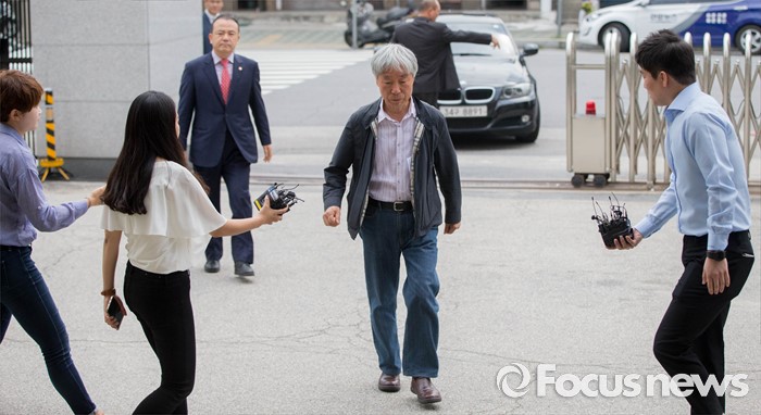 (서울=포커스뉴스) 27일 오전 이우환(80) 화백이 위작 판정이 내려진 작품 13점의 피해자 겸 참고인 신분으로 서울 중랑구 서울지방경찰청 지능범죄수사대에 출석하고 있다.