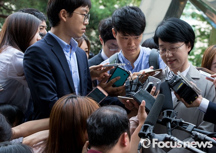 | △ 취재진 질문 답하는 박선숙 |