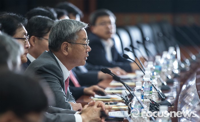 (서울=포커스뉴스) 27일 오전 서울 영등포구 금융투자협회 회의실에서 열린 브렉시트 관련 증권사 사장단 회의에 참석한 황영기 금융투자협회장이 모두발언을 하고 있다.