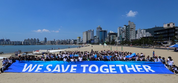이번 행사엔 부산 지역 유관 기관 관계자들, '위 세이브 투게더' 캠페인 사이트와 지역 자원봉사 단체를 통해 사전 참가 신청 한 350명의 시민과 전문 수중 잠수사 40여명이 함께 했다.