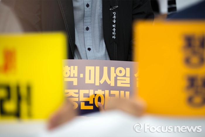 (서울=포커스뉴스) 28일 오전 서울 종로구 정부서울청사 앞에서 개성공단 입주기업 비대위 관계자들이 방북 승인을 촉구하는 집회를 하고 있다.