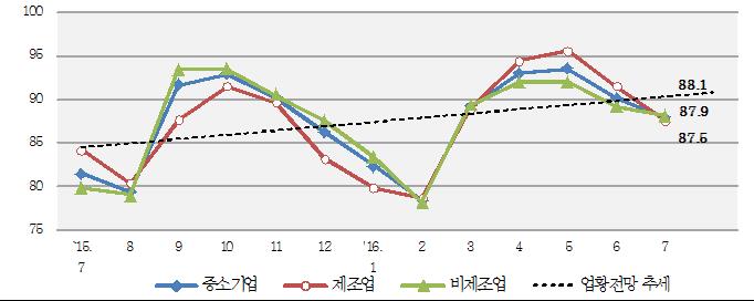 중소기업중앙회(이하 중기중앙회)는 지난 6월15~22일 3150개 중소기업을 대상으로 실시한 '2016년 7월 중소기업경기전망조사' 결과를 28일 발표했다.