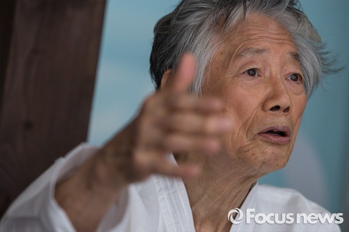 (서울=포커스뉴스) 28일 오전 서울 종로구 류가헌 갤러리에서 백기완 통일문제연구소 소장이 '시대의 2인전 두 어른' 기자간담회에 참석해 취재진의 질문에 답하고 있다.