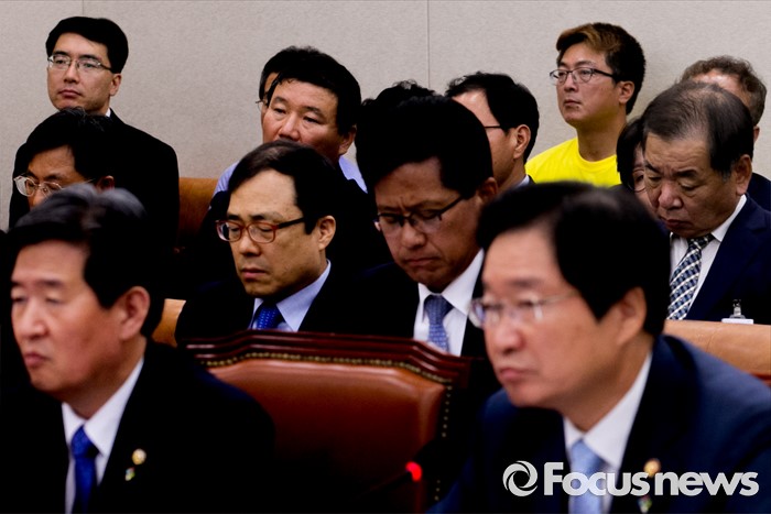 (서울=포커스뉴스) 28일 오후 서울 여의도 국회에서 열린 농림축산식품해양수산위원회 전체회의에 참석한 한 세월호 참사 가족협의회 관계자(노란 옷)가 회의를 방청하고 있다.