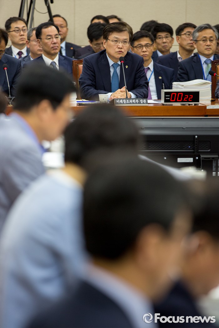 (서울=포커스뉴스) 최양희 미래창조과학부 장관이 28일 오후 서울 여의도 국회에서 열린 미래창조과학방송통신위원회 전체회의에 참석해 질의응답 하고 있다.