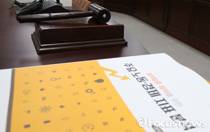 (세종=포커스뉴스) 28일 오후 세종시 정부세종청사 고용노동부 최저임금위원회 전원히의실에서 열린 최저임금위원회 제7차 전원회의에 의사봉이 놓여져 있다.