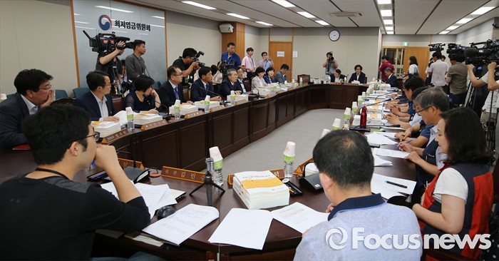 (세종=포커스뉴스) 박준성 최저임금위원회 위원장이 28일 오후 세종시 정부세종청사 고용노동부 최저임금위원회 전원히의실에서 열린 최저임금위원회 제7차 전원회의를 주재하고 있다.
