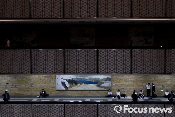 (서울=포커스뉴스) 28일 오후 서울 여의도 국회에서 상임위원회에 업무 지원을 나선 관계기관 공무원들이 전체회의가 열리는 회의실 밖을 지키며 업무를 보고 있다.