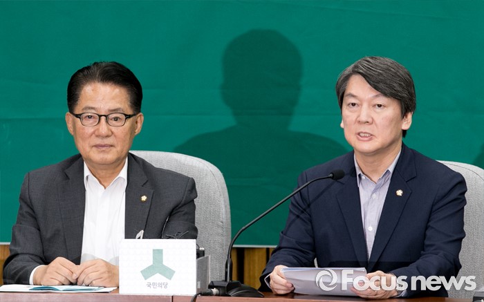 (서울=포커스뉴스) 28일 오후 서울 여의도 국회에서 리베이트 의혹에 연루된 박선숙, 김수민 의원과 왕주현 전 사무부총장 징계수위 등 논의를 위한 국민의당 의원총회를 마친 안철수 상임공동대표가 회의 결과에 대한 브리핑을 하고 있다. 왼쪽은 박지원 원내대표.