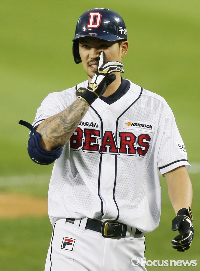 (서울=포커스뉴스) 28일 서울 잠실구장에서 열린 2016 프로야구 NC-두산 경기 4회말 1사 만루에서 두산 오재원이 좌익수 희생플라이 아웃되고 아쉬움을 드러내고 있다.
