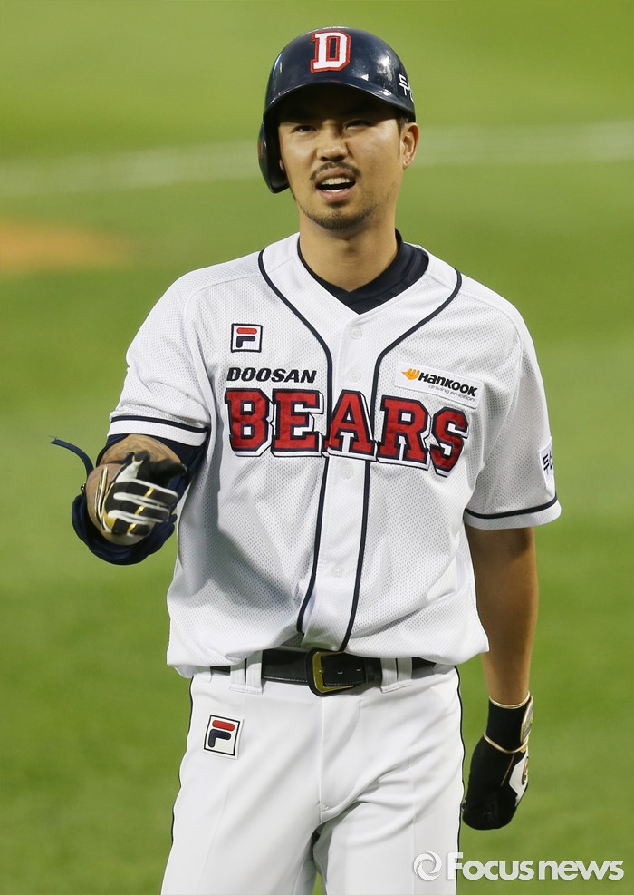 (서울=포커스뉴스) 28일 서울 잠실구장에서 열린 2016 프로야구 NC-두산 경기 4회말 1사 만루에서 두산 오재원이 좌익수 희생플라이 아웃되고 아쉬움을 드러내고 있다.