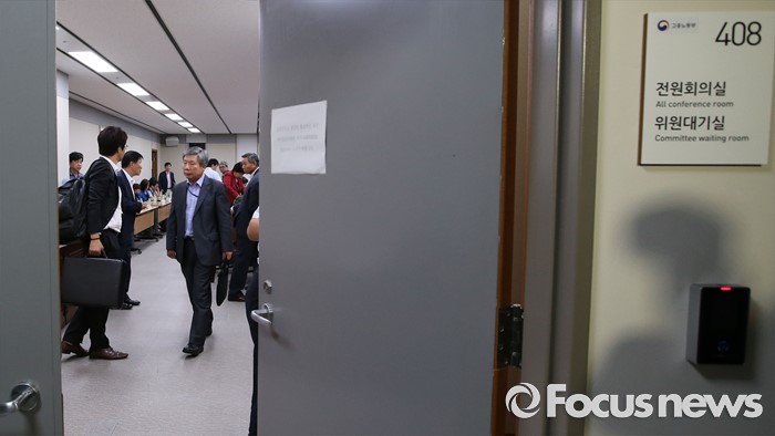 (세종=포커스뉴스) 29일 세종시 정부세종청사 고용노동부 최저임금위원회 전원회의실에서 위원들이 회의를 마치고 회의장을 나서고 있다. 최저임금 결정 법정 시한인 28일을 넘겼지만 최저임금 합의를 하지 못했다. 다음 8차 회의는 7월 4일에 열린다.
