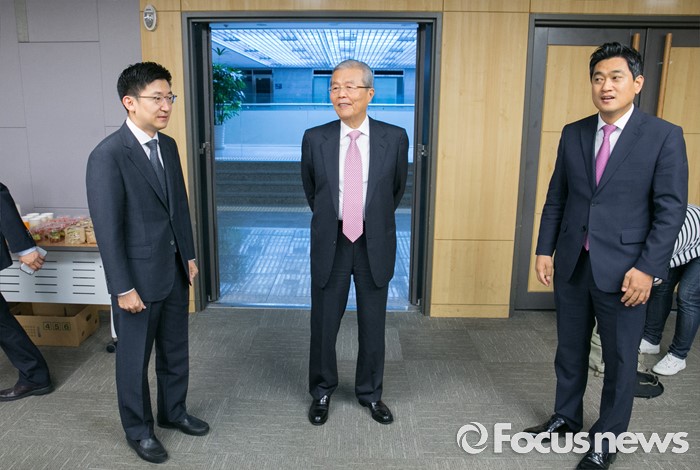 (서울=포커스뉴스) 29일 오전 서울 여의도 국회 의원회관에서 열린 아젠다 2050 창립총회에 참석한 김세연(왼쪽부터) 새누리당 의원, 김종인 더불어민주당 비대위 대표, 오신환 새누리당 의원이 대화하고 있다.