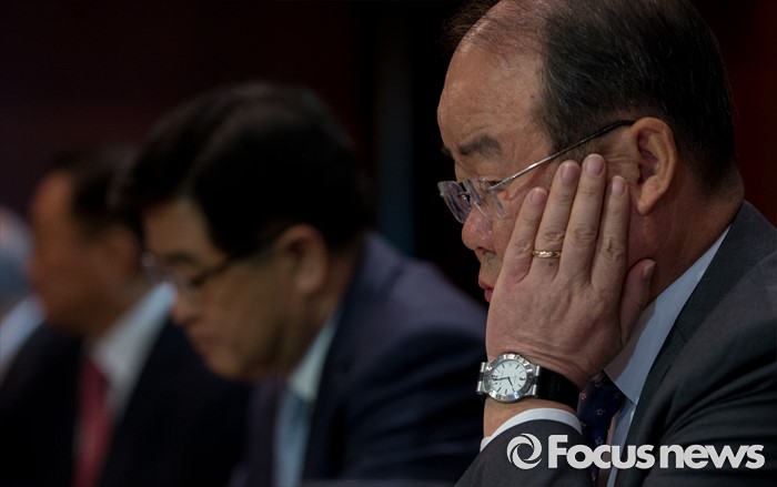 (서울=포커스뉴스) 29일 오전 서울 강남구 그랜드 인터콘티넨탈 호텔에서 열린 산업부 주최 조선업계 CEO ·전문가 간담회에 참석한 정성립 대우조선해양 사장이 생각에 잠겨 있다.