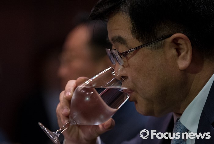 (서울=포커스뉴스) 29일 오전 서울 강남구 그랜드 인터콘티넨탈 호텔에서 열린 산업부 주최 조선업계 CEO ·전문가 간담회에 참석한 권오갑 현대중공업 사장이 물을 마시고 있다.