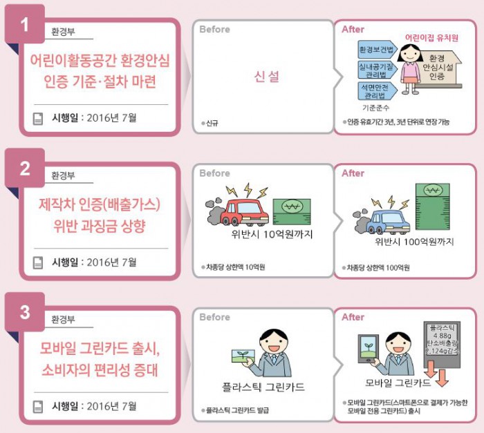 ▲모바일 전용 그린카드 출시를 통해 저탄소·친환경 소비문화를 확산할 수 있다. 온라인 채널로 즉시 신청·발급이 가능하고, 모바일앱 등을 활용한 결재 방법도 개선된다. 시행일은 오는 7월부터다.2016년 하반기부터 이렇게 달라집니다. <출처=기획재정부>2016년 하반기부터 이렇게 달라집니다. <출처=기획재정부>