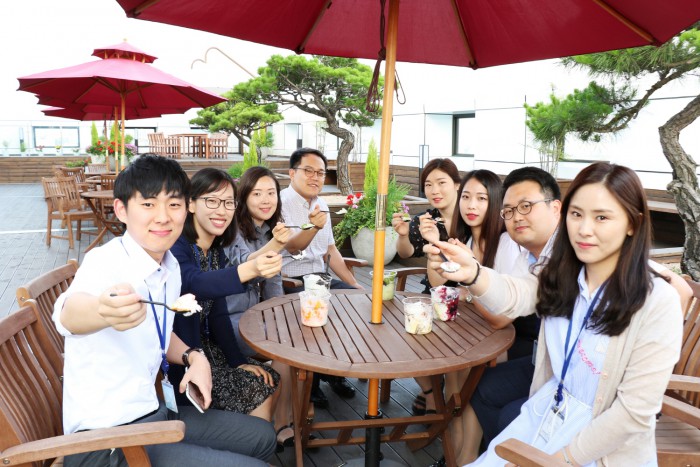 | △ (사진)+여름휴가에+대해+이야기를+나누고+있는+유진그룹+직원들.jpg |