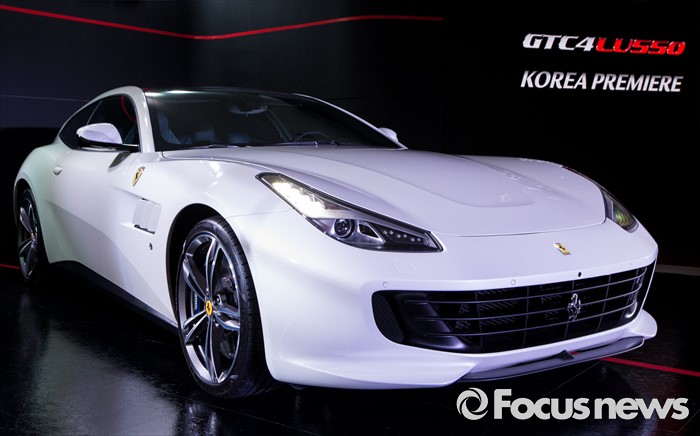 (서울=포커스뉴스) 29일 오전 서울 광진구 W서울 워커힐 호텔에서 이탈리아 스포츠카 브랜드 페라리가 'GTC4 루쏘(GTC4Lusso)'를 선보이고 있다.