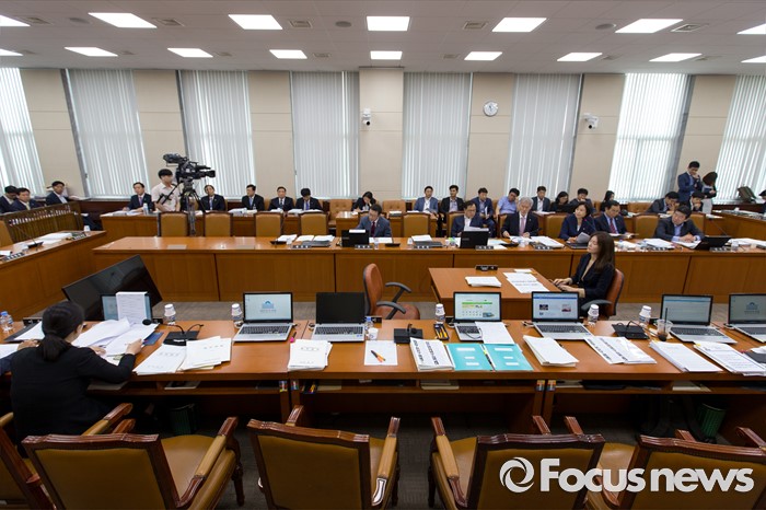 (서울=포커스뉴스) 29일 오전 서울 여의도 국회에서 열린 '안전행정위원회 전체회의'에서 더불어민주당 위원들이 강신명 경찰청장에게 살수차 공개를 요구, 질의응답을 거부한 채 퇴장해 회의가 난항을 겪고 있다.