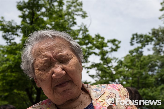(서울=포커스뉴스) 29일 오전 서울 중구 예장동 옛 통감관저 터에서 열린 일본군 위안부 피해자 추모공원 '기억의 터' 기공식에 길원옥 할머니가 참석하고 있다.