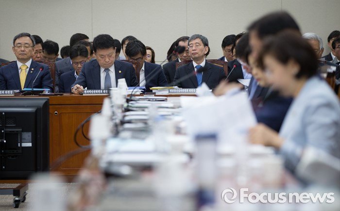 (서울=포커스뉴스) 최성준(왼쪽 첫번째) 방송통신위원장이 29일 오전 서울 여의도 국회에서 열린 미래창조과학방송통신위원회 전체회의에 출석하고 있다.