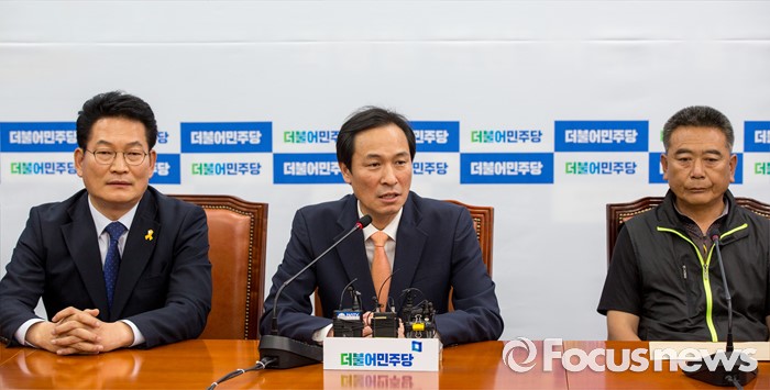 (서울=포커스뉴스) 우상호 더불어민주당 원내대표가 29일 오후 서울 여의도 국회에서 열린 '서해 5도 중국어선 불법조업 대책 마련 및 해양주권 수호 위안 협약식'에 참석해 모두발언 하고 있다.
