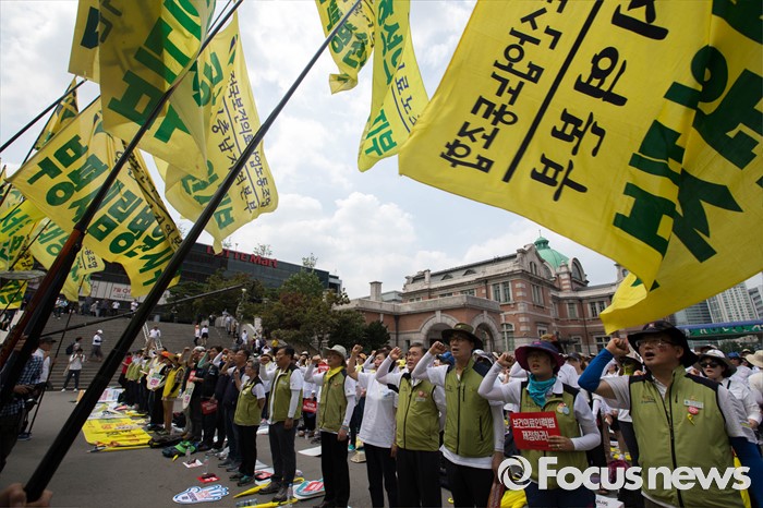 (서울=포커스뉴스) 29일 오후 서울 용산구 서울역 앞에서 보건의료노조의 총력투쟁 결의대회 집회가 열리고 있다.