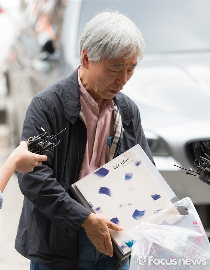 (서울=포커스뉴스) '위작 논란'에 휩싸인 현대미술가 이우환(80) 화백이 29일 오후 서울지방경찰청 지능범죄수사대로 최종 입장을 밝히기 위해 출석하고 있다.