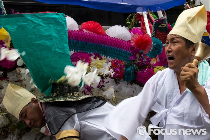 (서울=포커스뉴스) 29일 오후 서울 영등포구 국회의사당 인근에서 전국화훼협회 등 27개 단체원들이 김영란법 반대를 외치며 행진 중 한 참가자가 꽃을 던지고 있다.